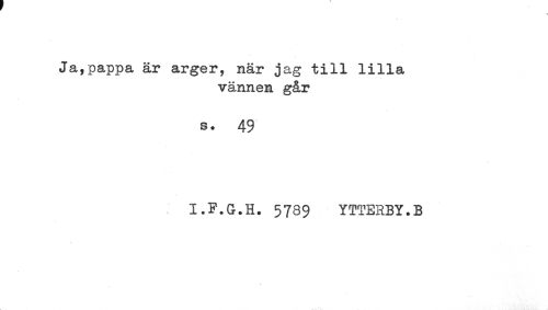 //// Ja,pappa är arger? när jag till lilla //// vännen går //// s. 49 //// I.F.G.H. 5789 YTTERBY.B ////