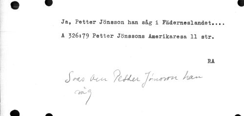 //// Ja, Petter Jönsson han såg i Fäderneslandet.... //// A 326:79 Petter Jönssons Amerikaresa 11 str. //// RA ////
