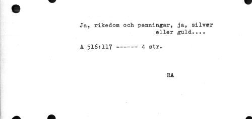 //// Ja, rikedom och penningar, ja, silver //// eller guld.... //// A 516:117 ------4 str. //// RA //// * //// < ////