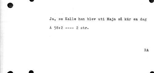 //// Ja, se Kalle han blev uti Maja så kär en dag //// A 58:2----2 str. //// RA ////
