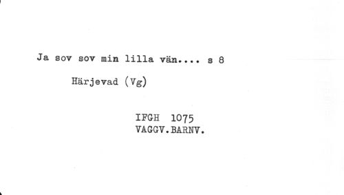 //// Ja sov sov min lilla vän.... s 8 //// Härjevad (Vg) //// IFGH 1075 //// VAGGV.BARNV. ////
