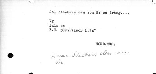//// * -- //// Ja, stackare den som är en dräng.... //// * //// Vg //// Dala sn //// E.u. 3893.Visor 1.547 //// - //// NORD.MUS. //// * J ^ ^^^ ^ - ////