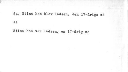 //// Ja, Stina hon blev ledsen, den 17-åriga mö //// t //// i //// se //// i //// Stina hon var ledsen, en 17-årig mö //// * //// i //// t //// i //// i //// I //// k i ////