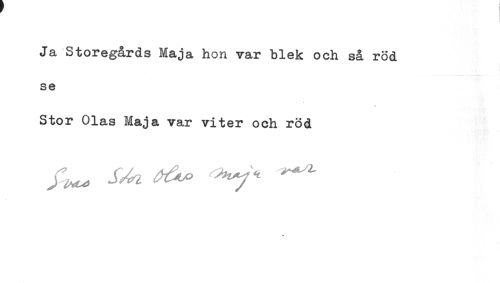//// Ja Storegårds Maja hon var blek och så röd //// se //// Stor Olas Maja var vi ter och röd ////