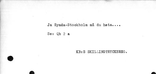 //// "i' * //// Ja Synda-Stockholm må du heta.... //// Se: Qb 2 a //// * //// KB:S SKILLINGTRYCKSREG. //// - ////