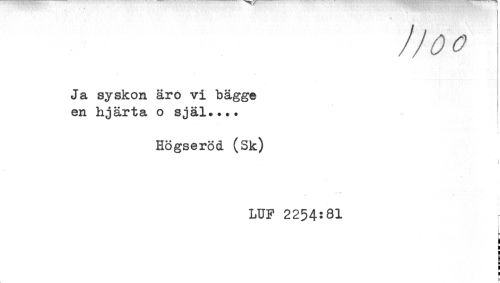 //// Ja syskon äro vi bägge //// en hjärta o själ.... //// Högseröd (Sk) //// i //// LUF 2254:81 //// ! //// ! //// L t ////
