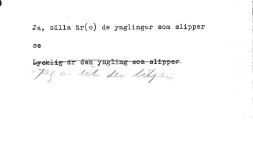 //// < //// ! //// Ja, sälla är(o) de ynglingar som slipper //// se //// i //// Lycklig är den yngling ! ////
