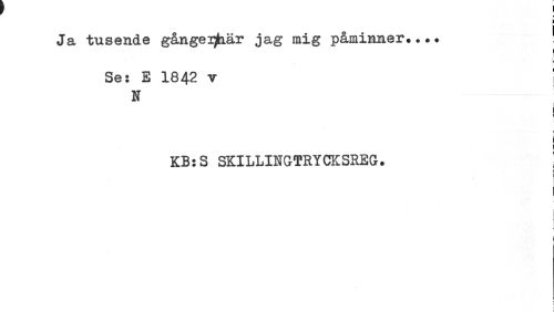//// Ja tusende gånge^är jag mig påminner.... ! //// ! //// Se: E 1842 v ! //// N //// i //// ! //// KB:S SKILLINGTRYCKSREG. ! //// , //// I //// } //// f ////