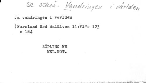 //// Ja vandringen i verlden //// (Forslund Med dalälven ll:VlL"s 123 //// s 184 //// SÖDLING MS //// MEL.NOT. ////