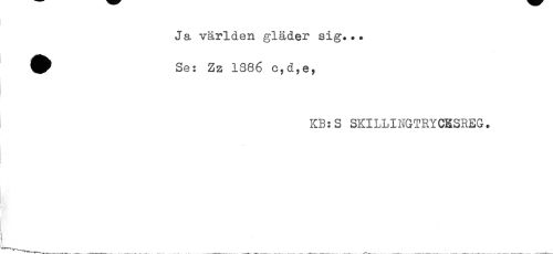//// Ja världen gläder sig... //// ^ Se: Zz 1886 c,d,e, //// KB:S SKILLINGTRYCKSREG. //// } ////