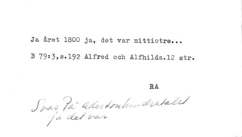 //// Ja året 1800 ja, det var nittiotre... //// B 79:3,8.192 Alfred och Alfhilda.12 str. //// RA ////