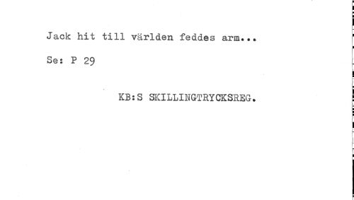 //// Jack hit till världen feddes arm... [ //// f //// Se: P 29 [. //// KB:S SKILLINGTRYCKSREG. ! //// ! ////