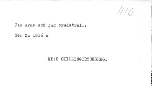 //// Jag arme ack jag syndaträl.. //// Se: Zz 1816 c //// KB:S SKILLINGTRYCKSREG. //// < //// i //// i //// ! //// j //// i //// i //// H ////