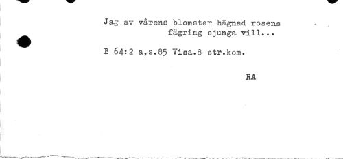 //// Jag av vårens blomster hägnad rosens //// ^^ fägring sjunga vill... //// B 64:2 a?s.85 Visa.8 str.kom. //// RA //// t //// ! //// —. -------—----_____ _ ___. r—------- ////