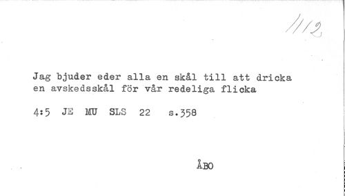 //// * //// Jag bjuder eder alla en skål till att dricka //// en avskedsskål för vår redeliga flicka //// 4:5 JE M SLS 22 s.358 ////