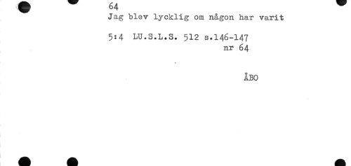 //// Jag blev lycklig om någon har varit //// 5:4 LU.S.L.S. 512 S.146-147 //// nr 64 //// -t //// ÅBO ////