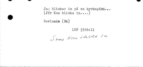//// Jag blickar in på en kyrkogArd.*. //// (jfr Kom blicka in....) //// Ravlunda (Sk) //// ) //// LUF 3388:11 ////