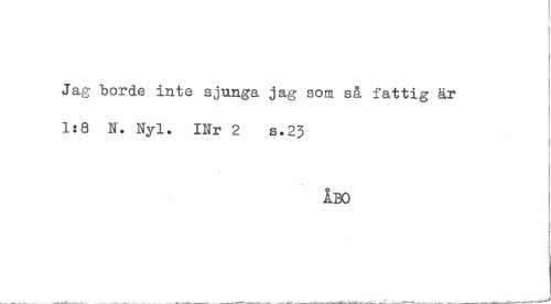//// Jag borde inte sjunga jag som så fattig är //// t //// 1:8 N. Nyl. INr 2 s.23 //// ÅBO ////
