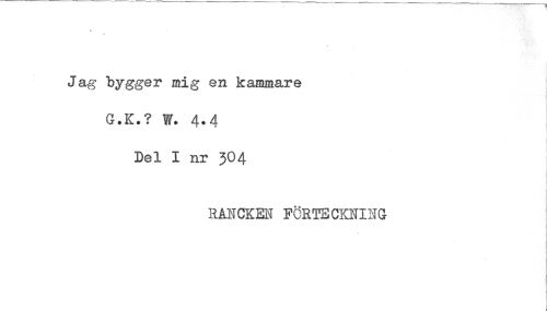 //// Jag' bygger mig en kammare //// G.K.? W. 4.4 //// Del I nr 304 //// * //// RANCKEN FÖRTECKNING ////