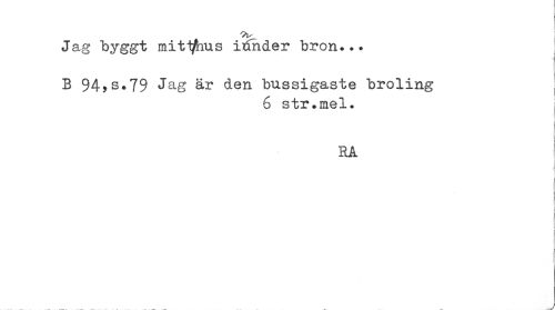 //// Jag byggt mit^us i^inder bron... //// B 94?s.79 den bussigaste broling I //// 6 str.mel. //// RA //// .... —- . — - — —_ .. —. jr- ////