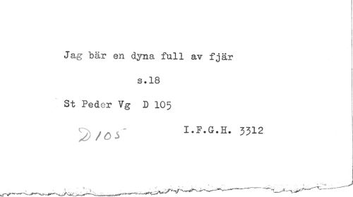 //// Jag bär en dyna full av fjär //// s.18 //// St Peder Vg D 105 //// I.F.G.H. 3312 ////