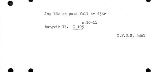 //// Jag bär en gryta full av fjär //// s.10-11 //// Borgvik VI. D 105 //// I.F.G.H. 2461 //// ! //// I ////