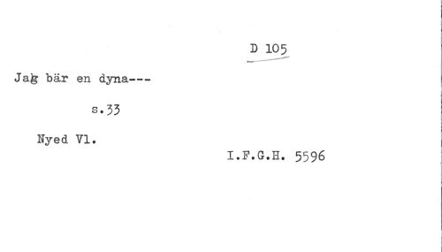 //// D 105 //// Jag bär en dyna--- //// s.33 //// Nyed VI. //// I.F.G.H. 5596 //// ! ////