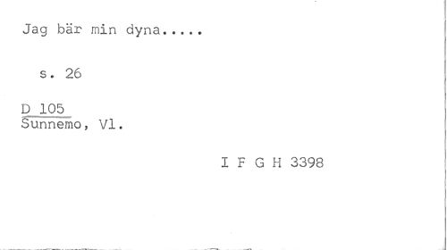 //// Jag bär min dyna..... //// s. 26 //// D 105 //// Sunnemo, VI. //// IFGH 3398 ////