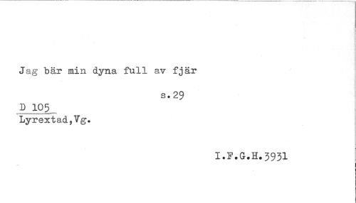 //// Jag bår min dyna full av fjär //// s.29 //// D 105 //// Lyrextad,Vg. //// I.F.G+H.393I ////