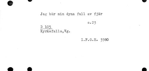 //// Jag bär min dyna full av fjär //// s.23 //// D 10^ //// Kyrkefalla,Vg. //// I.F.G.H. 3980 ////