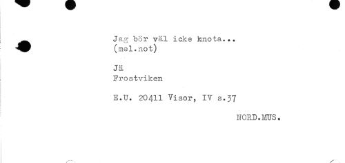 //// ^ Jag bor val icke knota... //// (mel.not) //// Jå //// Frostviken //// E.U. 20411 Visor, IV s-37 //// j //// NORD. ms. //// ] ////