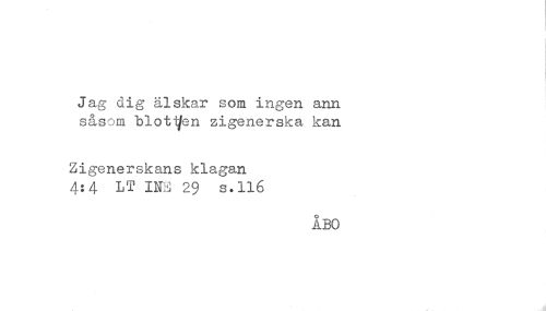 //// Jag dig ålskar som ingen ann //// såsom biot^en zigenerska kan //// Zigenerskans klagan //// 4:4 LT IIM 29 s.116 //// ÅBO ////