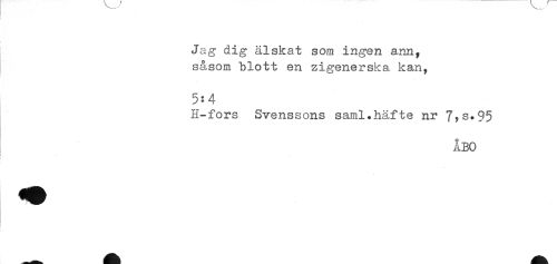 //// j Jag dig älskat som ingen ann, //// såsom blott en zigenerska kan, //// 5-4 //// H-fors Svenssons saml.häfte nr 7,s.Q5 //// ÅBO //// i. - ////