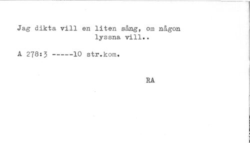 //// Jag dikta vill en liten sång? om någon //// lyssna vill.. //// A 278:3 -----10 str.kom. //// - //// RA //// - ////