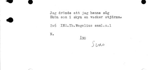 //// Jag drömde att jag henne såg //// ^^ Skön som i skyn en vacker stjärnan //// 2:6 INE.Yh.Wegelius saml.s.l //// N. //// ÅBO //// j ////