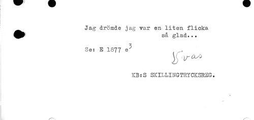 //// _ Jag drömde jag var en liten flicka //// ^^ så glad... //// Se: E 1877 e^ //// KB:S SKILLINGTRYCKSREG. //// ! ////