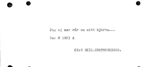 //// Jag ej mer rår om mitt hjärta... //// Se: N 1803 d //// KB:S SKILLINGTRYCKSREG. ////