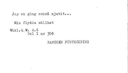 //// Jag en gång också njutit... //// Min flydda sällhet //// Wikl.Q.W. 4-6 //// Del I nr 3O8 //// RANCKEN FÖRTECKNING ////