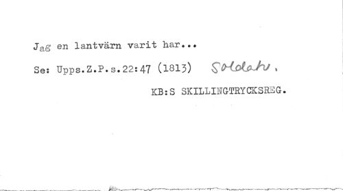 //// Jag en lantvärn varit har... //// Se: Upps.Z.P.s.22:47 (1313) //// KB:S SKILLINGTRYCKSREG. //// —_____ _____A*. ---- --- ////