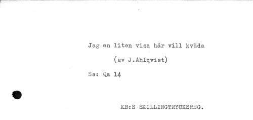 //// * //// Jag en liten visa här vill kväda //// (av J.Åhlqvist) //// Se: Qa 14 //// KB:S SKILLINGTRYCKSREG. ////