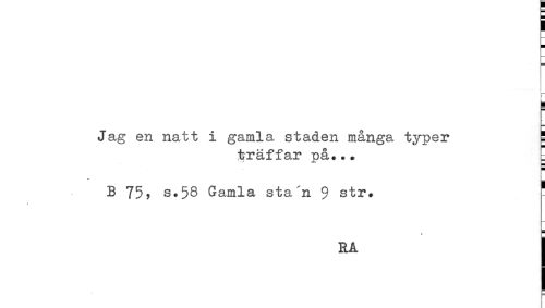 //// t //// a //// Jag en natt i gamla staden många typer E //// träffar på... - //// B 75? s.58 Gamla stan 9 str. ! //// RA j ////