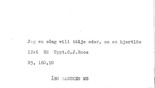 //// t //// Jag en s&ng vill tälje eder, om en hjertlös //// 12:6 RS Uppt.C.J.Roos //// R3, 160,10 //// ÅBO RANCKEN MS ////