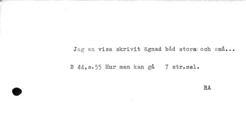 //// Jag en visa skrivit ägnad båd stora och små... //// B 44?s.55 man kan gå 7 str.mel. //// ^ RÅ ////
