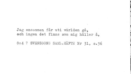 //// * //// ) //// Jag ensammen får uti världen gå, ^ //// ach ingen det finns som mig håller å, //// 8:4 ? SVENSSONS SAML.HÄFTE Nr 31, s.36 ////
