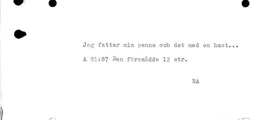 //// j //// Jag fattar min penna och det med en hast... //// A 91:87 Den försmådde 12 str. //// : RA //// t //// Hr. ' \ ^ t ////