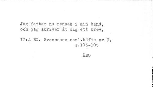 //// Jag fa, 11 ar nu pennan i min hand, //// och jag akriver åt dig ett brev, //// 12:4 BO. Svenssons saml.häfte nr //// s.IO3-IO5 //// ÅBO ////
