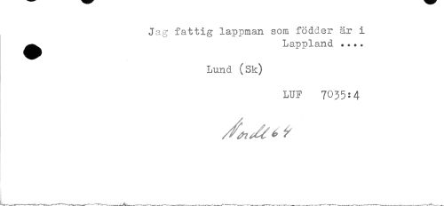 //// Jag fattig lappman som födder år i //// ^^ Lappland .... //// Lund (Sk) //// LUF 7035:4 //// _______ ______ ____ _ _____ ____ _______ _ ......_ ////