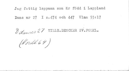 //// Jag fattig lappman som är född. i Lappland //// Dans nr 27 I s-474 och 447 Ulma 93=17 //// ^^ , TILLH.DENCKER SV.FOLKL. ////