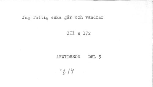//// Jag fattig enka går och vandrar //// III s 172 //// ARWIDSSON DEL 3 //// 13/y ////