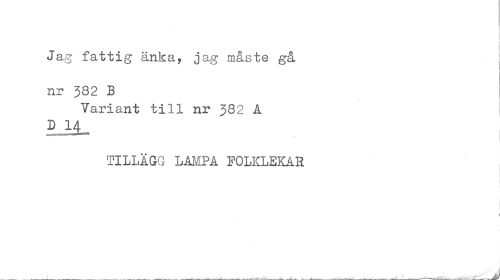 //// Jag fattig änka, jag måste gå //// nr 382 B //// Variant till nr 382 A //// D 14^ //// * //// TILLÄGG LAMPA FOLKLEKAR //// t ////